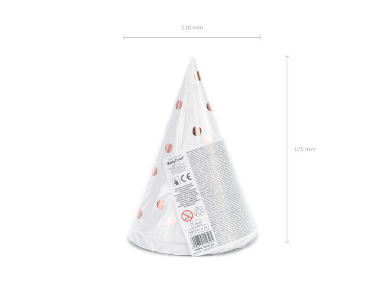 • Czapeczki w kolorze białym ze wzorem w kropeczki w kolorze różowego złota.
