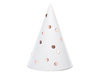 Czapeczki w kolorze białym ze wzorem w kropeczki w kolorze różowego złota.