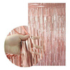 Dekoracja w postaci różowego złota kurtyny wykonanej z folii.