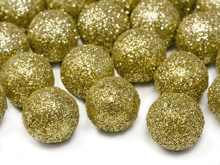 Dekoracje brokatowe Kula, w kolorze złotym, rozmiar 2 centymetry.(1 karton / 30 op.)(1 op. / 25 szt.)