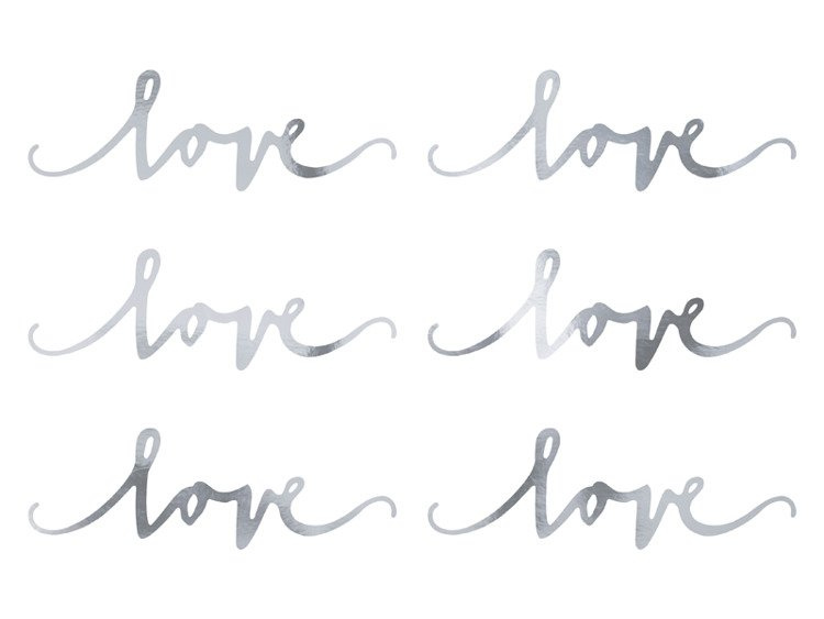 Dekoracje papierowe Love, Elegant Bliss, w kolorze srebrnym, wymiary ok. 6 x 20 cm.(1 karton / 50 op.)(1 op. / 6 szt.)