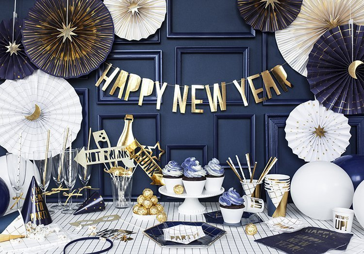 Dekoracje papierowe Let's Celebrate w kolorze złotym lustrzanym.
