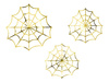 Dekoracje papierowe w kształcie pajęczyn w kolorze złotym lustrzanym,wymiary: ok. 23 x 23 cm (1 szt.) i ok. 18 x 18 cm (2 szt.).(1 karton / 50 op.)(1 op. / 3 szt.)