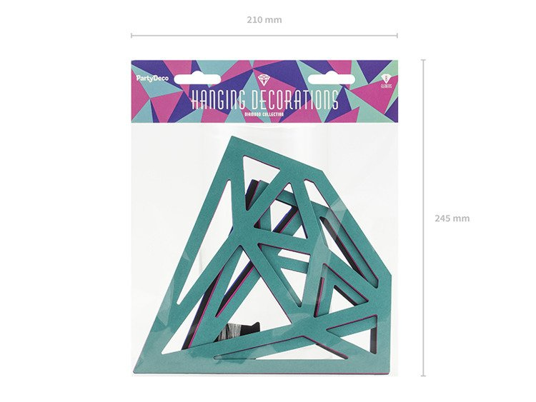 Dekoracje Diamenty, kolekcja Diamentowa, wykonane z papieru, mix wzorów, w zestawie diamenty o wymiarach ok. 22x21 i ok. 18x17 cm oraz żyłka.(1 karton / 40 op.)(1 op. / 8 szt.)