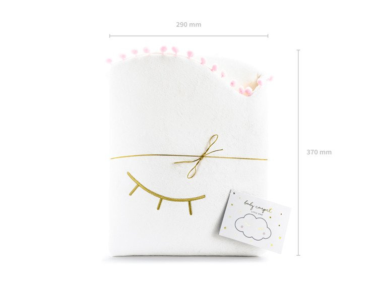 Pluszowy dywan Chmurka w białym kolorze z różowymi pomponami i złotym haftem.
