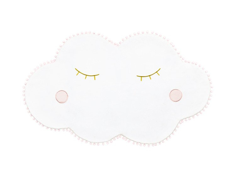 Pluszowy dywan Chmurka w białym kolorze z różowymi pomponami i złotym haftem. Wymiary ok. 103 x 61 cm.(1 karton / 5 szt.)