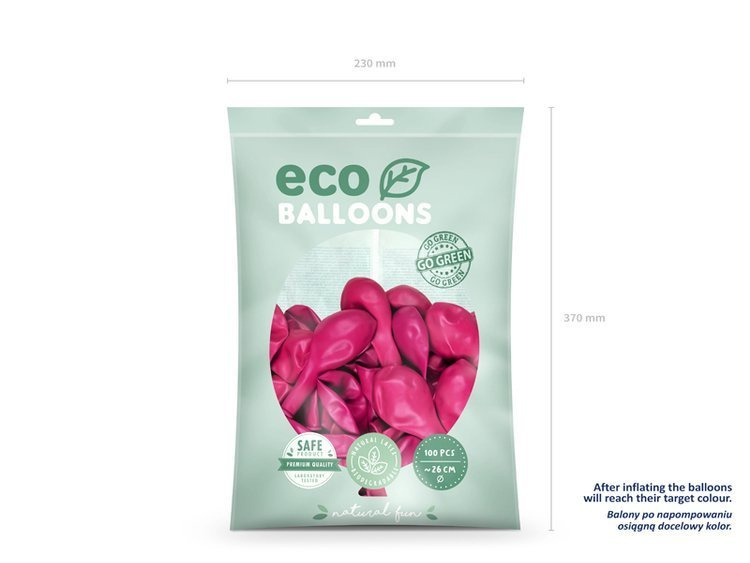 Balony Eco pastelowe w kolorze fuksji, średnica ok. 26 cm.(1 op. / 100 szt.)