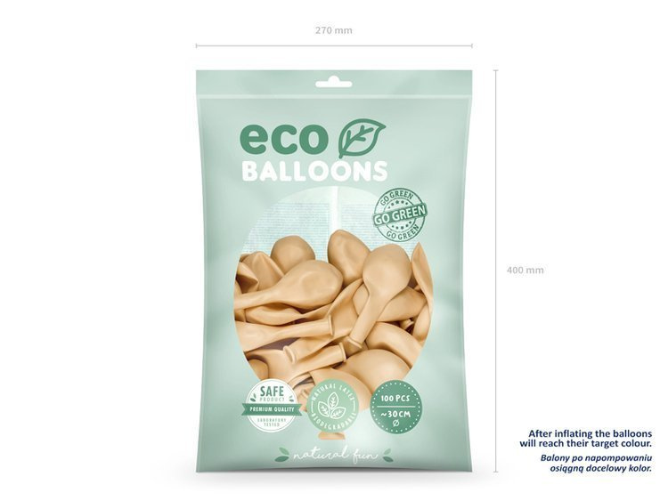 Balony Eco pastelowe w kolorze jasno brzoskwiniowym, średnica ok. 30 cm.(1 op. / 100 szt.)