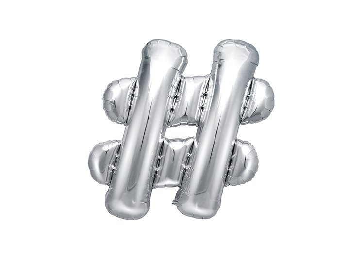 BALON FOLIOWY HASZTAG # 35 CM SREBRNY