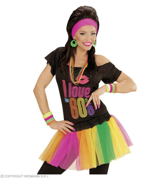 Spódniczka tiulowa, kilkuwarstwowa. Kolor: tęczowy. W pasie ma elastyczna gumkę. Spódniczka jest piękniejsza niż na zdjęciu, które nie jest w stanie oddać jej uroku.