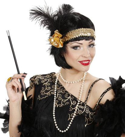 Opaska zdobiona kiwtem i pieknymi czarnymi piórami.