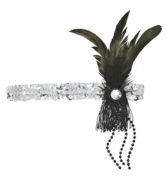 Opaska wykonana z elastycznej taśmy ozdobionej srebrnymi cekinami.