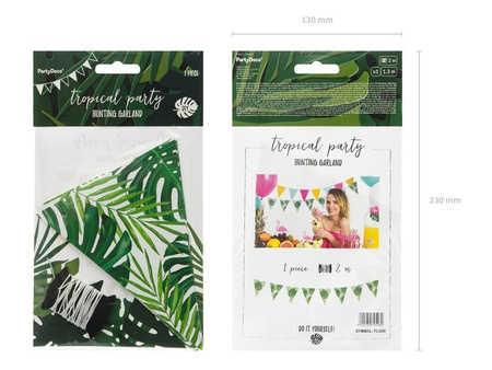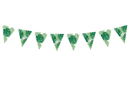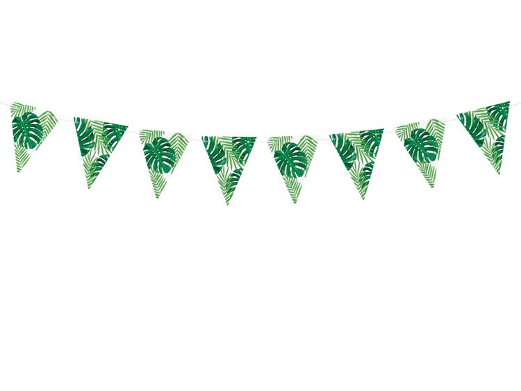 Girlanda Aloha Flagietki - Liście, mix wzorów, do samodzielnego złożenia, zestaw zawiera 8 flagietek i ok. 2 m sznurka, wymiary po złożeniu: wysokość ok. 15 cm, długość ok. 1,3 m.(1 karton / 50 szt.)