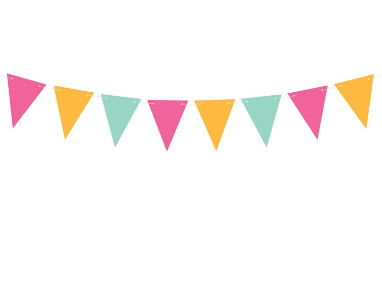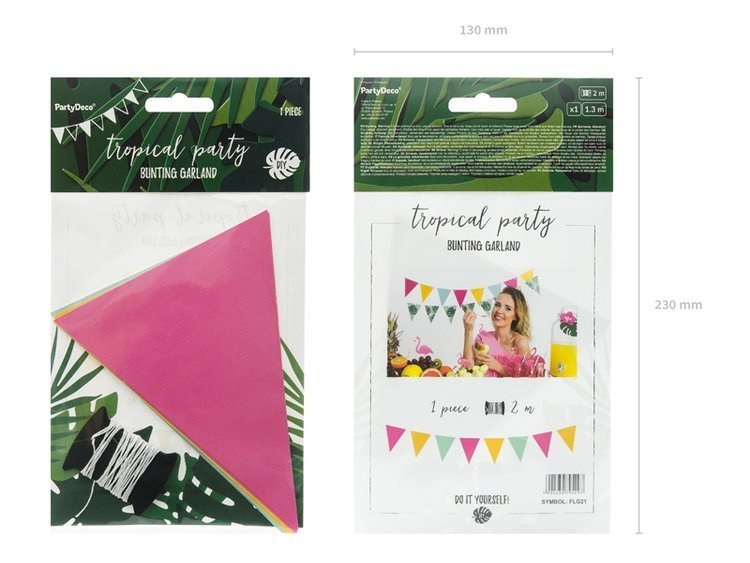 Girlanda Aloha - Flagietki, mix kolorów, do samodzielnego złożenia, zestaw zawiera 8 flagietek i ok. 2 m sznurka, wymiary po złożeniu: wysokość ok. 15 cm, długość ok. 1,3 m.(1 karton / 50 szt.)