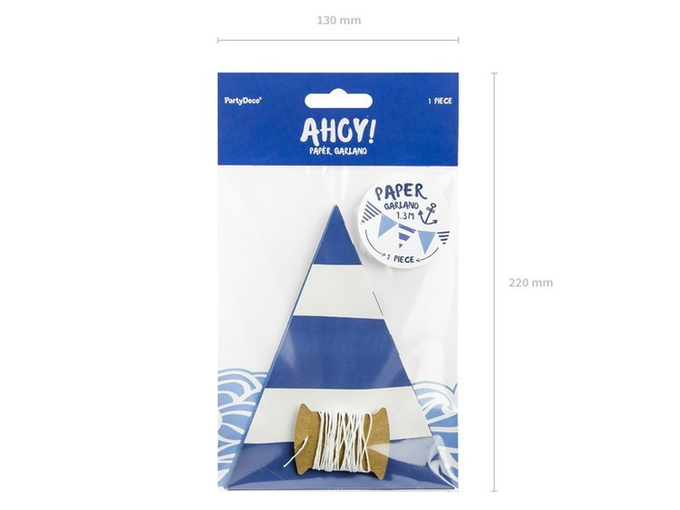 Girlanda Ahoy - Flagietki, mix wzorów, do samodzielnego złożenia, zestaw zawiera 8 flagietek i ok. 2 m sznurka, wymiary po złożeniu: wysokość ok. 14 cm, długość ok. 1,3 m.(1 karton / 50 szt.)