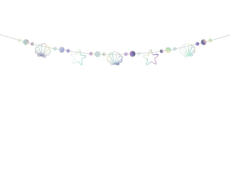 Girlanda Syrenka przeszywana wykonana z papieru w kolorze opalizującym, długość ok. 1,65 m, wysokość ok. 11 cm. (1 karton / 50 szt.)