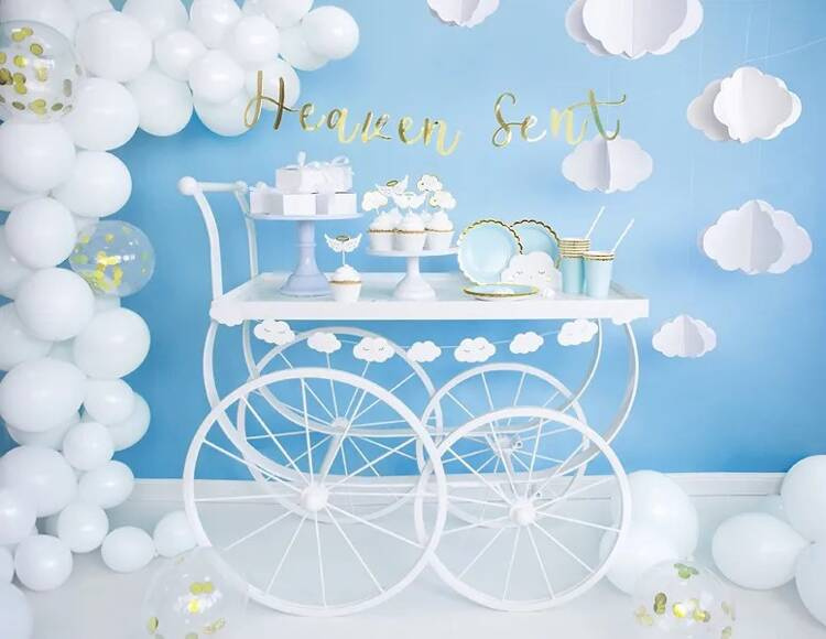 Przeszywana girlanda Little Star - Chmurki wykonana z białego papier ze złotym nadrukiem.