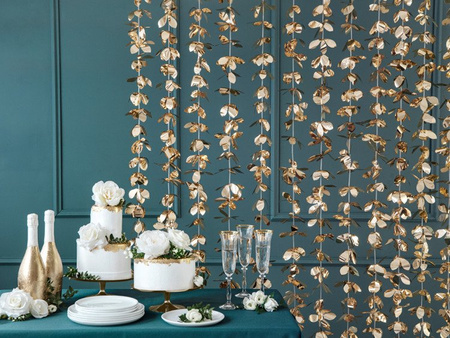 Girlanda na tło - Kwiatki wykonana z folii w kolorze złotym, wymiary: szerokość ok. 100 cm, długość ok. 210 cm.(1 karton / 8 szt.)