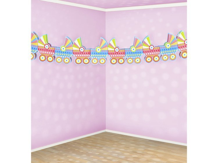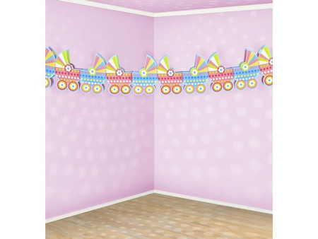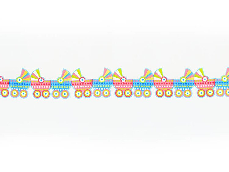 Girlanda papierowa Wózeczki, kolorowa, wymiary 14 centymetrów x 3 metry.(1 karton / 50 szt.)