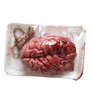 Dekoracja wykonana z tworzywa sztucznego. Na styropianowej tacy ułożony mózg, całosć owinięta folią.