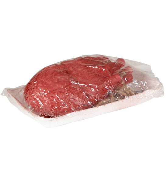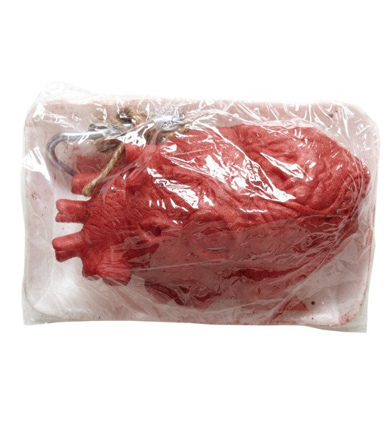 Dekoracja wykonana z tworzywa sztucznego. Na styropianowej tacy ułożone serce, całosć owinięta folią.