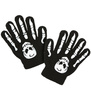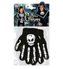 Czarne rękawiczki wykonane z tkaniny imitujacej bawełne. Na wierzchniej stronie nadrukowane kości dłoni i czaszka. Długość: ok. 22 cm