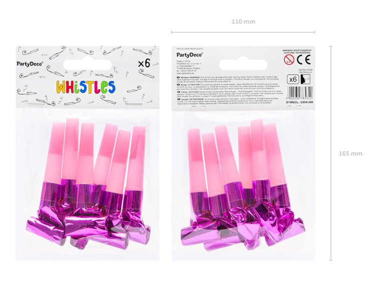 Gwizdki w kolorze ciemnoróżowym.(1 karton / 50 op.)(1 op. / 6 szt.)