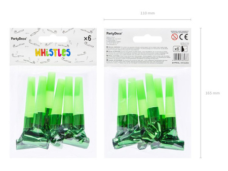 Gwizdki w kolorze zielonym.(1 karton / 50 op.)(1 op. / 6 szt.)