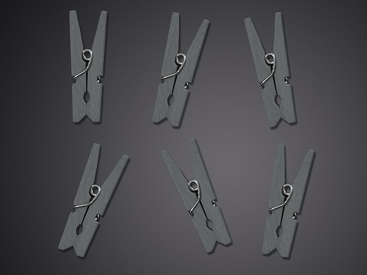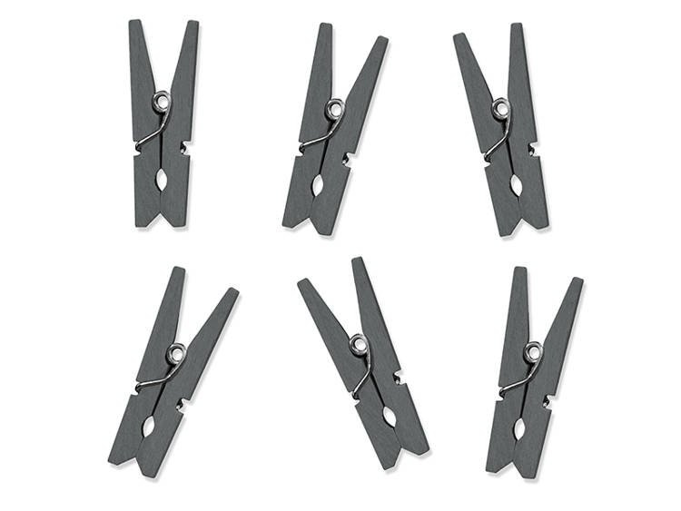 Klamerki drewniane w kolorze szarym, wysokość 3,5 centymetra.(1 karton / 50 op.)(1 op. / 10 szt.)