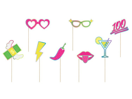 Gadżety do zdjęć Electric Holo, mix wzorów i kolorów, do samodzielnego złożenia. Zestaw zawiera 8 elementów, 8 patyczków i 8 naklejek.(1 karton / 50 op.)(1 op. / 8 szt.)