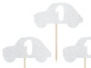 Dekoracje do muffinek 1st Birthday - Auta w kolorze srebrnym brokatowym, wysokość ok. 10 cm.(1 karton / 50 op.)(1 op. / 6 szt.)