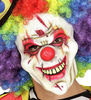Maska lateksowa strasznego klauna w kolorze białym z bliznami. Upiorny makijaż dodaje masce czarnego charakteru.