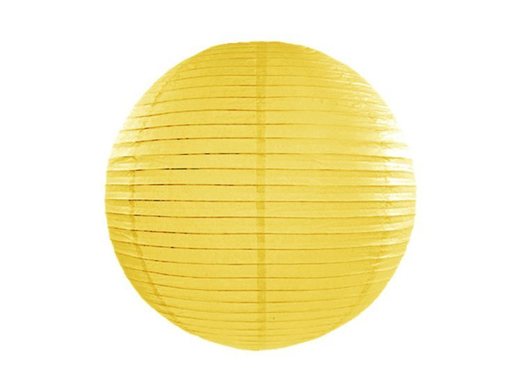 Lampion papierowy w kolorze żółtym o średnicy 20 centymetrów.