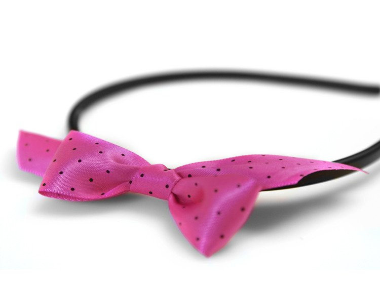 Opaska z kokardką w kolorze różowym z czarnymi kropkami, na wieczór panieński.