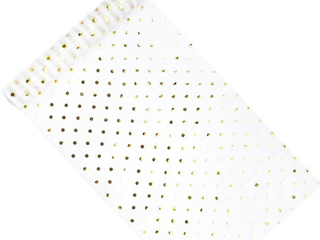 Organza w kolorze białym ze złotym, jednostronnym nadrukiem, wymiary 0,36x9 metrów.(1 karton / 24 szt.)