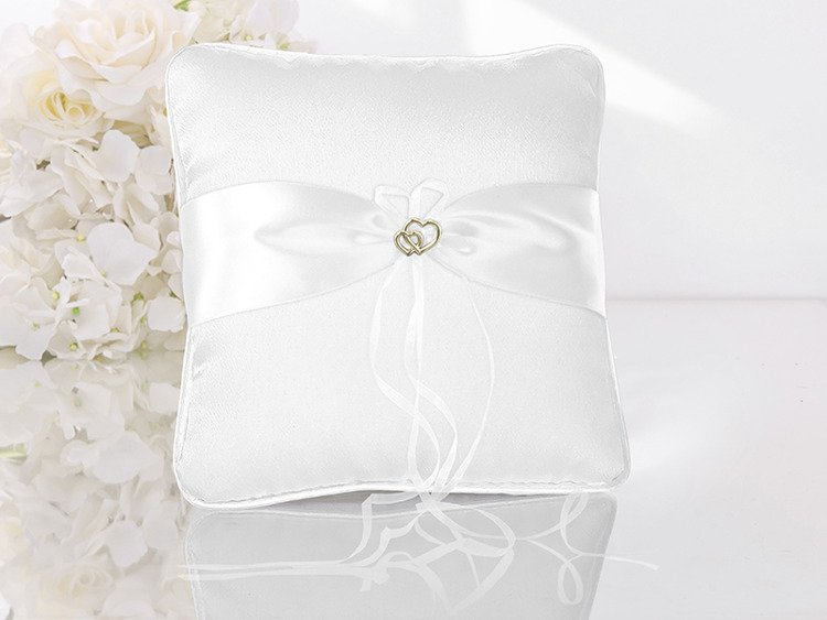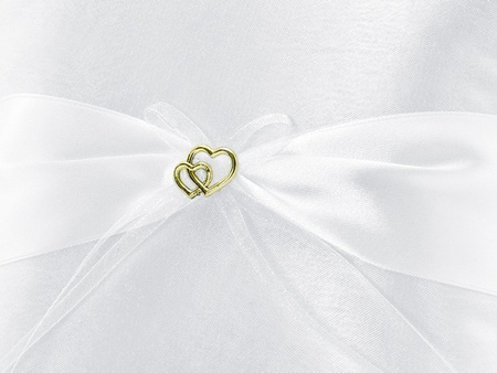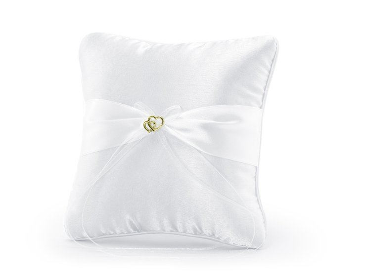 Poduszka pod obrączki z błyszczącej satyny w kolorze białym.