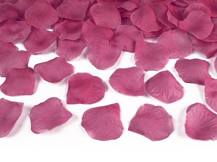 Płatki róż w kolorze różowym, zapakowane w woreczek.(1 karton / 100 op.)(1 op. / 100 szt.)