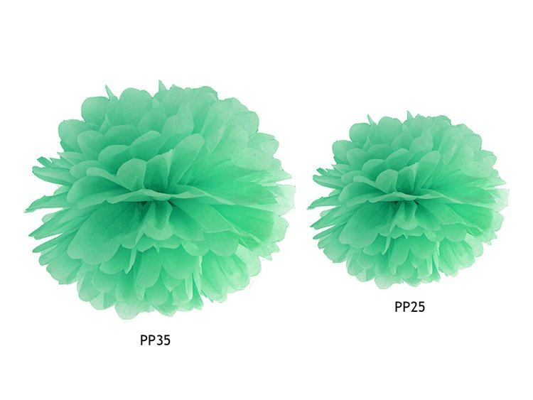 Pompon bibułowy w kolorze miętowym, rozmiar 35 centymetrów.(1 karton / 100 szt.)