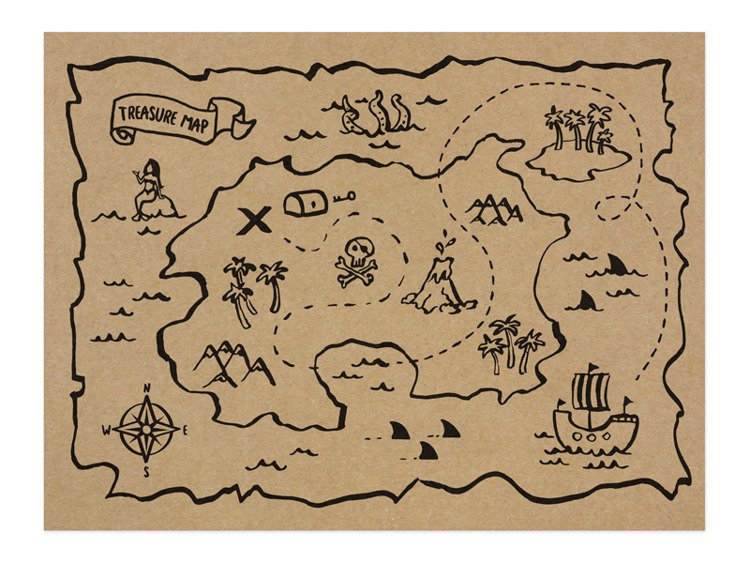 Podkładki papierowe Piraci wykonane z kraftowego papieru z czarnym nadrukiem, wymiary: szerokość ok. 40 cm, wysokość ok. 30 cm.(1 karton / 20 op.)(1 op. / 30 szt. / 5 mop.)