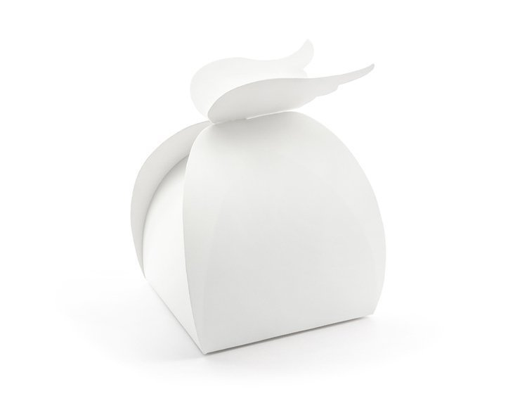 Pudełka wykonane z białego papieru w kształcie skrzydeł.