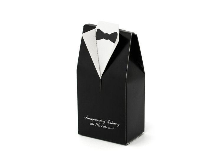 Pudełeczka Pan Młody wykonane z papieru w kolorze czarno-białym.