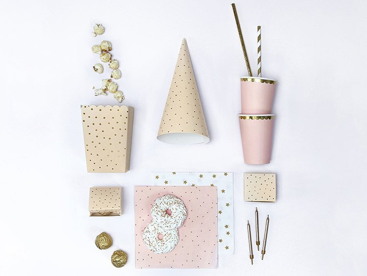 Pudełeczka w kolorze jasnobrzoskwiniowym w złote kropki.
