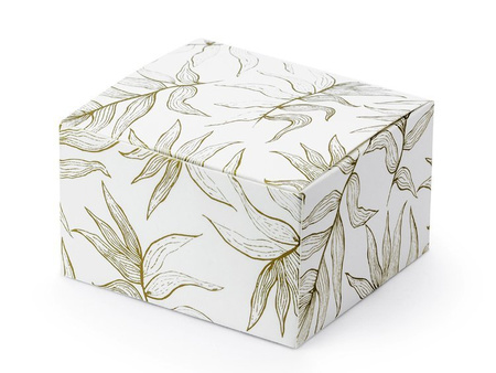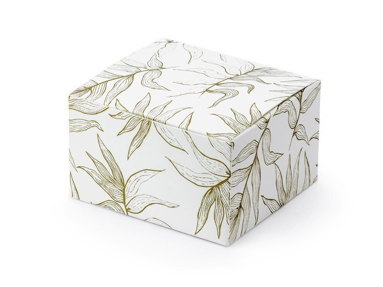 Pudełeczka w kolorze białym ze złotymi liśćmi.