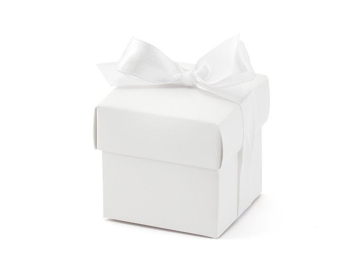 Pudełeczka z kokardką wykonane z papieru w kolorze białym.