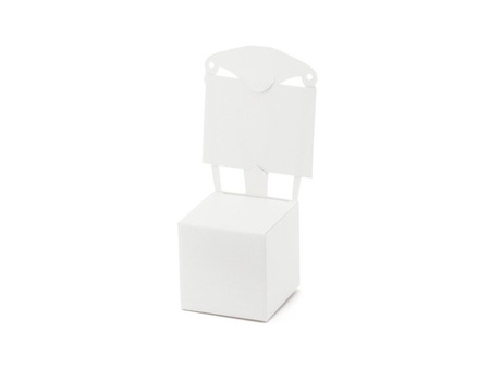 • Pudełeczka w kształcie krzesła z wizytówką wykonane z papieru w kolorze białym.