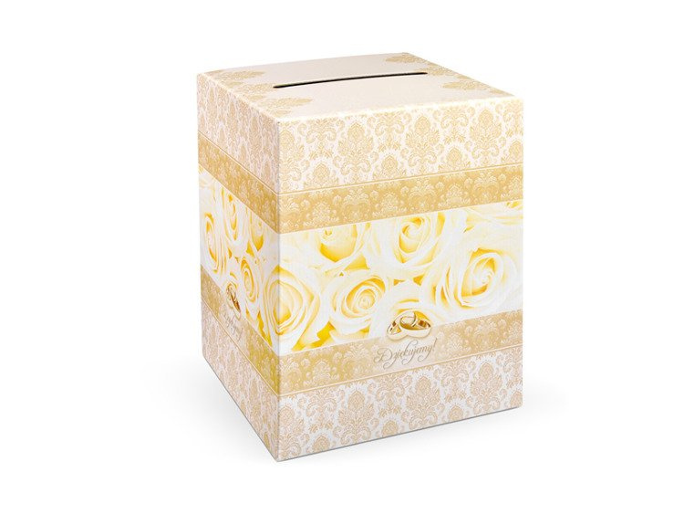 Pudełko na telegramy z papieru ze złotym nadrukiem.