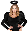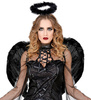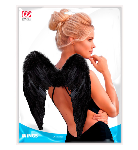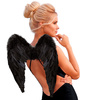 Skrzydła wykonane z piór farbowanych na czarny kolor. Montowane za pomocą szelkowych gumek.