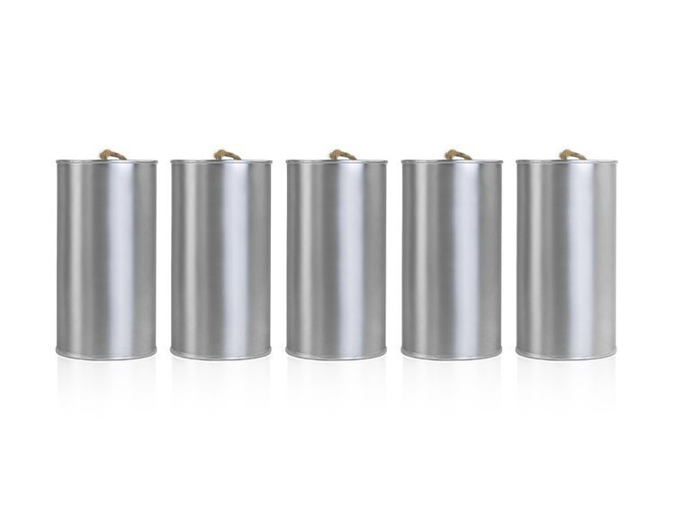 Puszki weselne do dekoracji samochodu, gładkie w kolorze srebrnym, z jutowym sznurkiem, wymiary 14x7 centymetrów.(1 op. / 5 szt.)