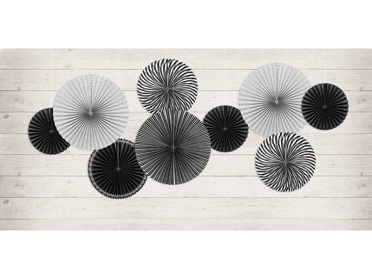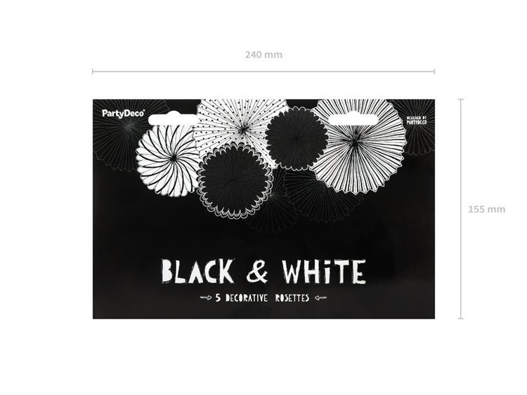 Rozety dekoracyjne w kolorach białym i czarnym.