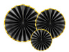 Rozety dekoracyjne w kolorze czarnym ze złotymi brzegami.